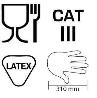 - CE-Kategorie III, EN 374, EN 388, EN 420