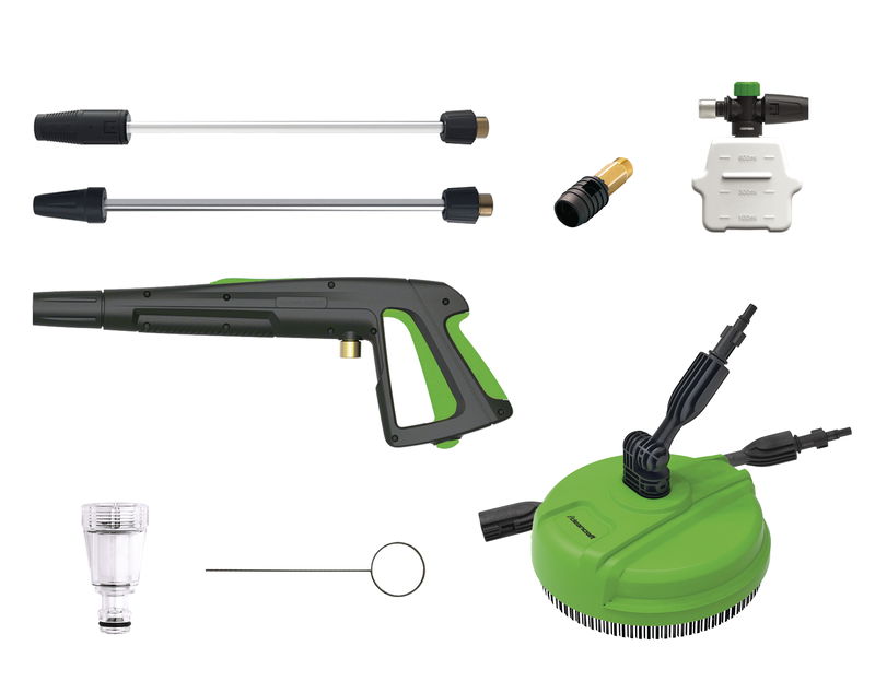 - Schutz des Induktionsmotors vor Überlastung durch MotorschutzschalterPraktische Halterungen für Handspritzpistole, Strahlrohr, Hochdruckschlauch und Netzkabel